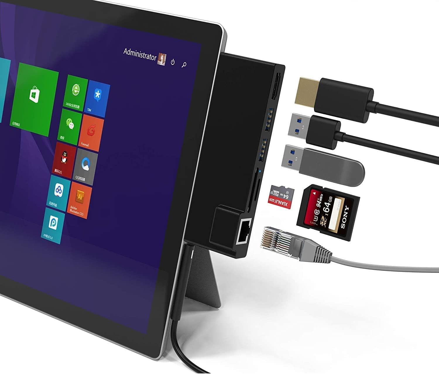 Specially Designed microsoft surface docking station for Surface Pro 4&5&6: designed 12.00mm space between mini DP and USB 3.0 port, seamless fits with Surface Pro 5 2017 and Surface Pro 6 2018, extends your surface for more. Matches excellently with your Microsoft Surface Pro 4/Pro 5/ Pro 6