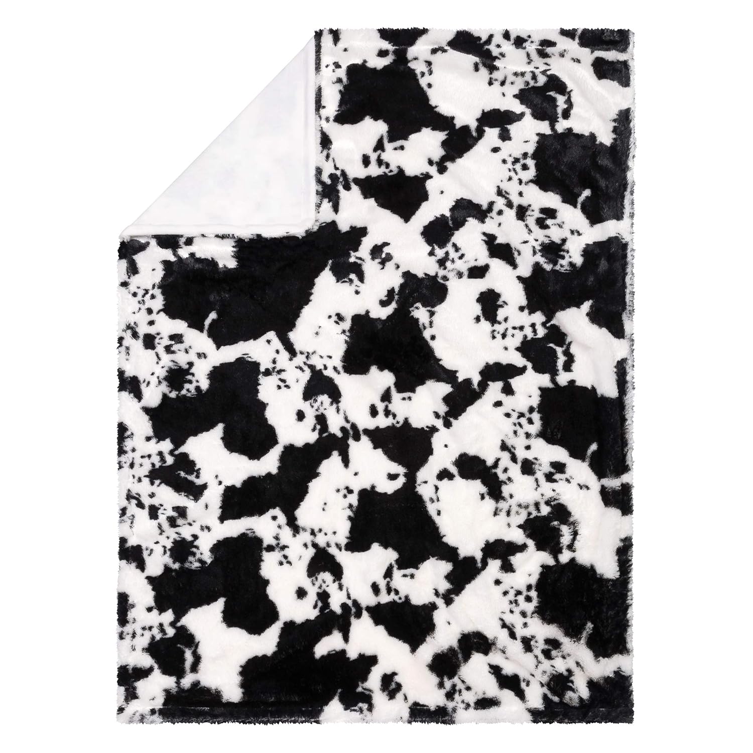 Cow Print Plush Baby Blanket-Cow Print Plush, White Back, Black, White, 30 in x 40 in