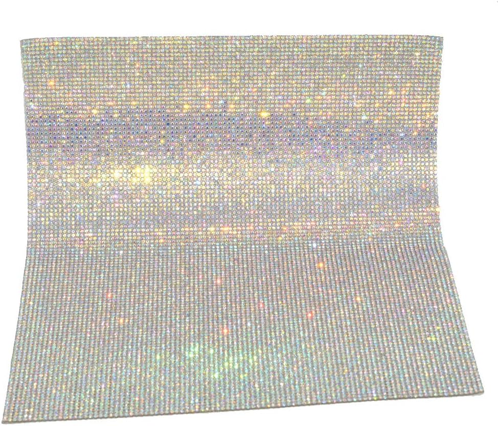 Amazing Shiny Crystal AB Gems Sheet (the diameter of stones on the sheet are all about 2mm ), can be easily cut to any shapes as you like, each stone was deeply stick on the sheet firmly, hard to take off and colors can keep sparking for long time, no fading.