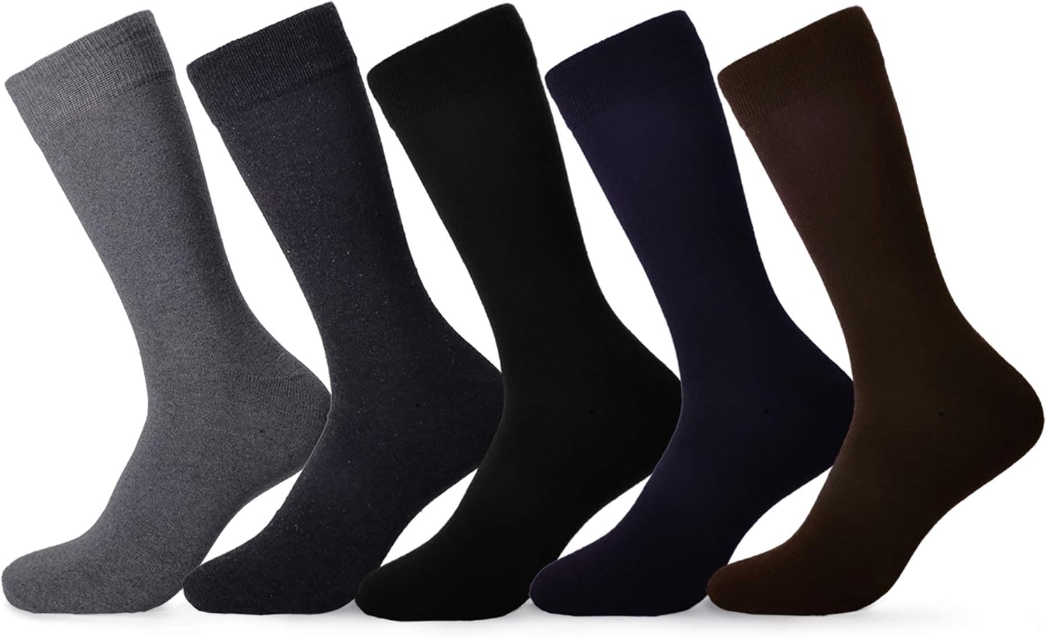 Emprella Dress Socks for Men- 5 Pack Mens Argyle Black or Solid Premium Cotton- Mid Calf