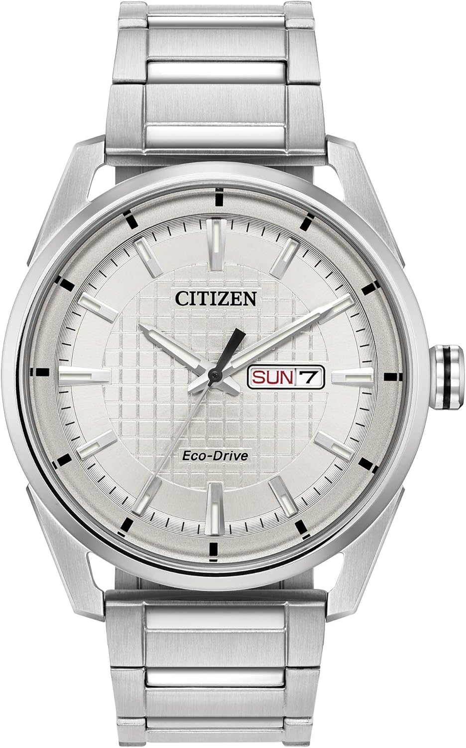 Reloj Eco-Drive Deportivo Casual para Hombre, 3 Agujas, Día/Fecha, Dial Estampado, Cristal Mineral Domado
