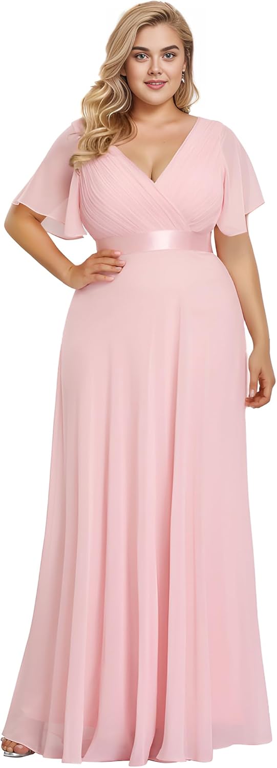 Ever-Pretty Women's Double V-Neck Chiffon Formal Dresses Plus Size Bridesmaid Dress 09890-DA