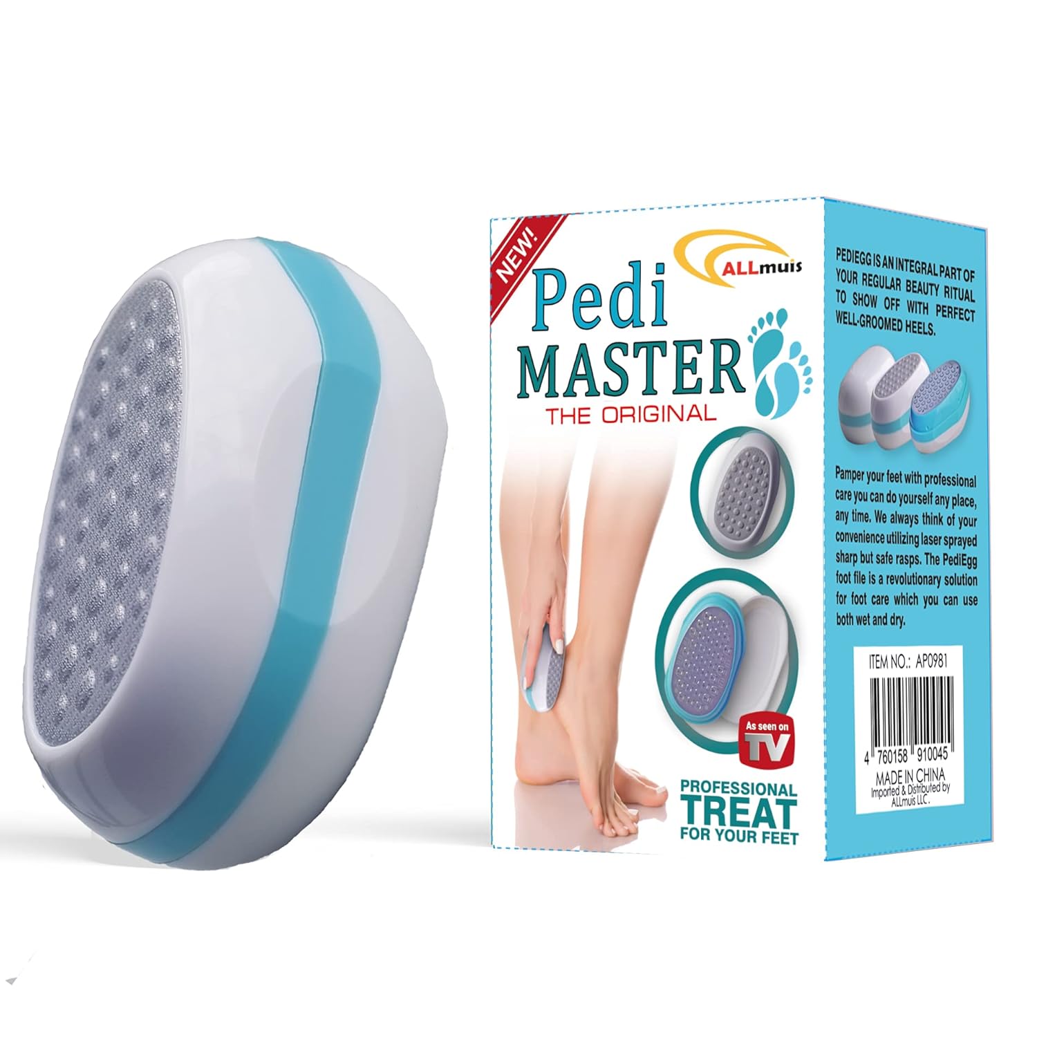 New Design - Pedicure Egg shaped Foot File - 2 in 1 (Rough Skin & Callus Remover) - Pedi MASTER - The Professional Pedicure Foot File, Rasp. 304 Stainless Steel Foot File by ALLmuis. Innovative design 2 in 1- rough skin peeling and delicate polishing. High-quality STEEL to remove rough skin safely but thoroughly - high quality 304 stainless steel surface and laser spraying for sharpness with no injuries or bleeding. Well-thought design fits your palm and ensures easy handling. Suitable both for home usage and professional care. Suitable for wet and dry usage. Compartment for shavings to make the procedure neat. Smooth and soft feet in several minutes and no injuries, no blood, no mess. Compact size and quick cleaning makes it suitable for travel. Say “No” to unattractive feet forever! With the innovative Pedi MASTER you are on the right track to have immensely beautiful legs! Forget about calluses, cracks, rough ugly-looking skin! You can get rid of them easily with our original foot file! Its oval shape makes it simple to use. Peel off the imperfections with the tough surface rasp first and then polish with the delicate one and see how they vanish away! You can use it practically anywhere both on dry or wet skin. With its ergonomic design, you can take it on our trip – it doesn’t take a lot of space in your luggage. Due to its compact size, you can put it even in your handbag and take care of your feet any free moment. With rasps inside, it won’t damage anything in your bag. Laser sprayed stainless steel surface ensures proper dead skin removing yet won’t hurt your feet. On top of that, it does not leave any mess around as all peels and shavings remain in a special compartment which can be conveniently disposed. Discover the advantages of the wonderful Pedi MASTER! Want to try? We are waiting to pack and ship it to you right away!