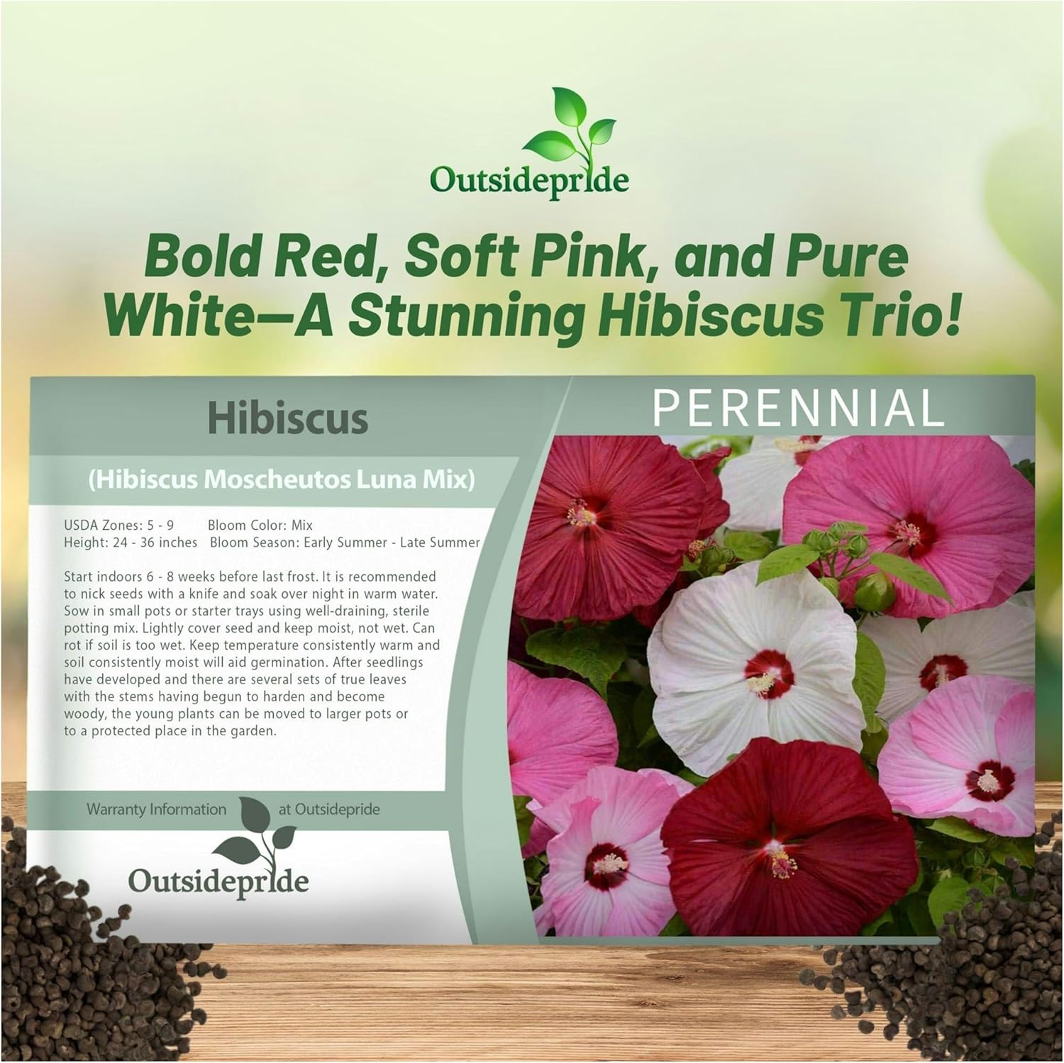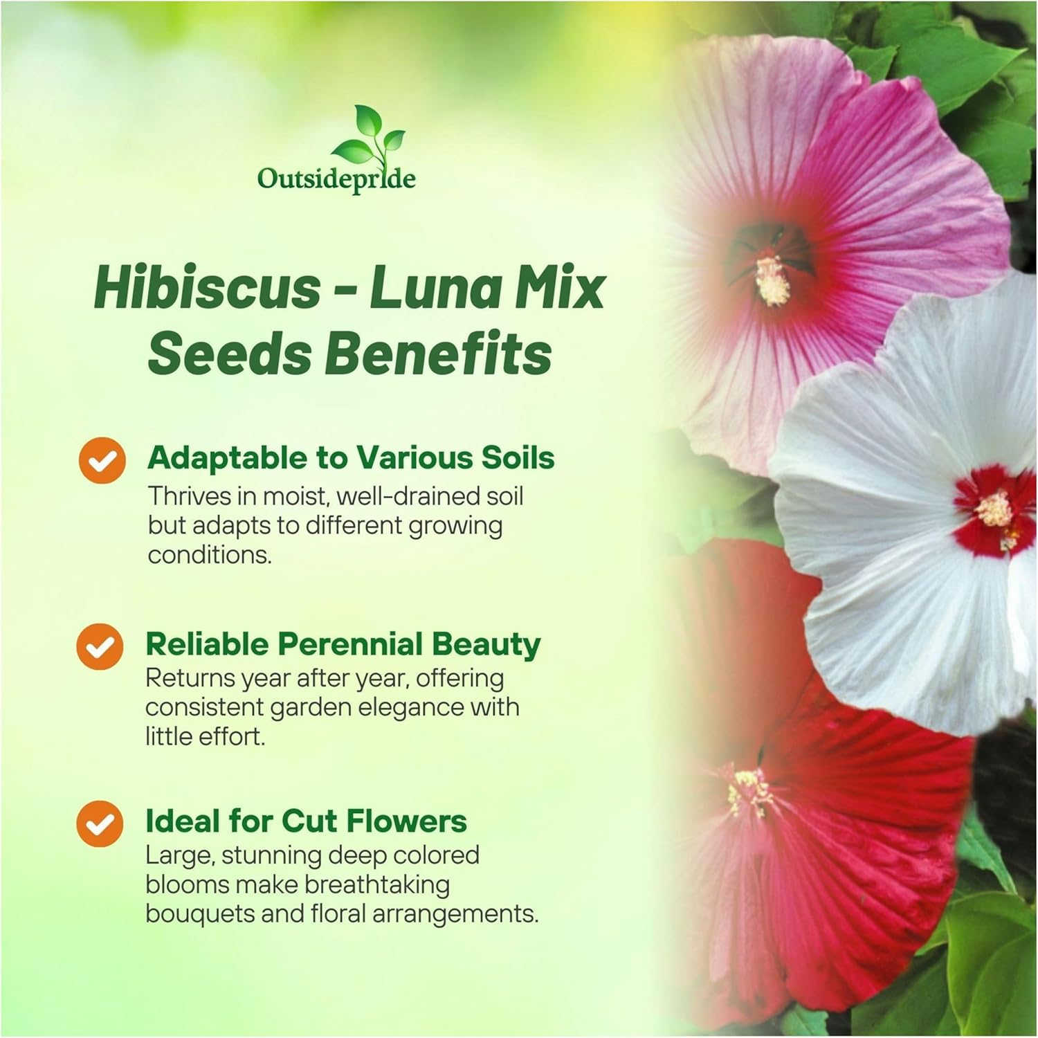 Outsidepride Luna Mix Hibiscus Seeds - 10 Pcs Perennial Flower Seeds for Planting Pollinator-Friendly, Large & Elegant Blooms with Dense Dark Green Foliage for Containers, Pots, & Garden Spaces