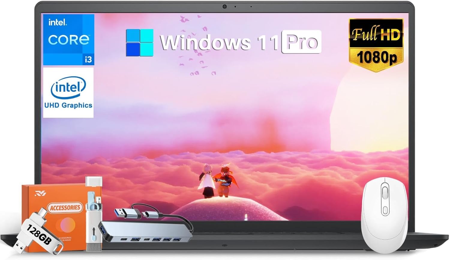 Touchable FHD Display: This Dell Inspiron 15 laptop features a 15.6-inch IPS FHD 120Hz refresh rate, WVA technology, anti-glare coating, a resolution of 1920 x 1080 (Full HD resolution and vivid images, bringing your entertainment experience to the extreme