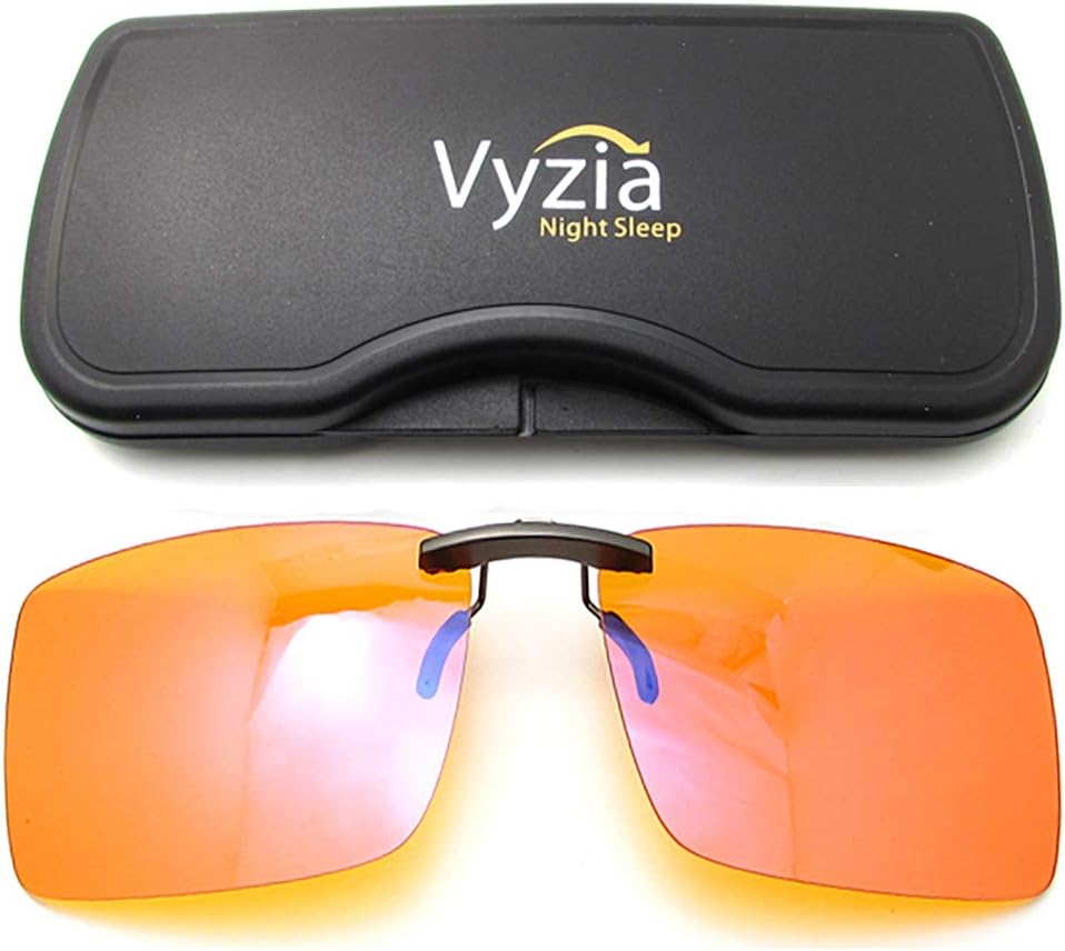 Gafas de Bloqueo de Luz Azul Vyzia Clip On para Dormir | Se ajustan sobre gafas de prescripción, las lentes naranja ayudan a reducir la fatiga ocular por computadora e inducen el sueño