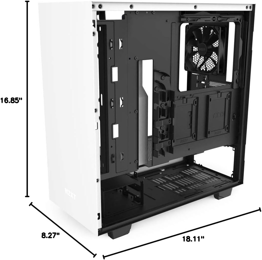 NZXT H510 - CA-H510B-W1 - Caja de PC de torre media ATX compacta para juegos - Puerto USB Type-C en la entrada frontal - Panel lateral de vidrio templado - Sistema de gestión de cables - Preparado para refrigeración líquida - Blanco/Negro