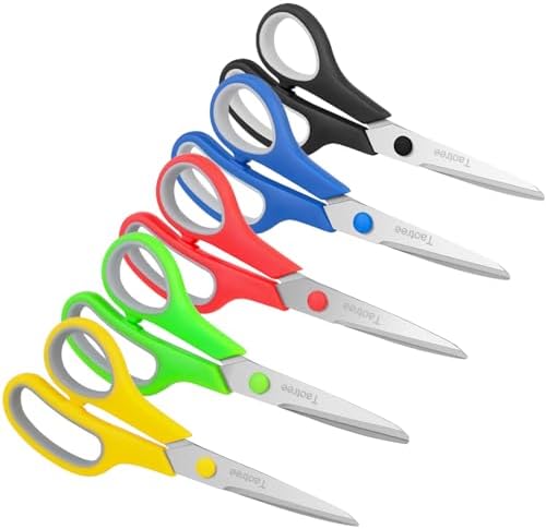 Tijeras multiusos Taotree de 8 pulgadas, paquete de 5, tijeras afiladas de acero inoxidable para uso general en la oficina, el hogar, aula, clase, maestro, estudiante, suministros de tijeras para niños mayores, mismo tamaño con: 8 pulgadas
