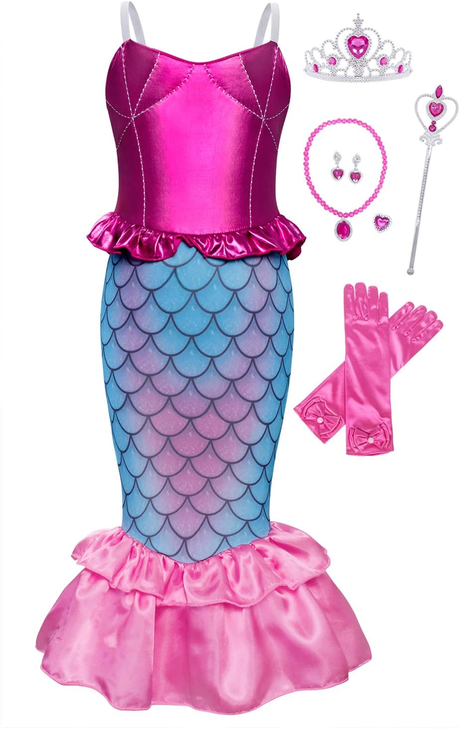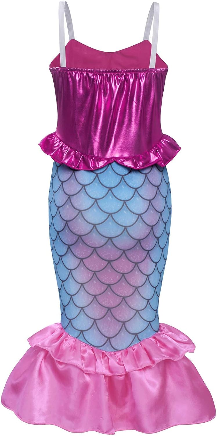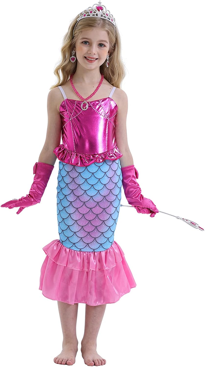 Traje de Sirena AmzBarley para Niñas, Vestido de Princesa Sirena, Disfraz de Halloween, Fiesta Temática de Disfraces, Cosplay, Juega a Personajes, Ropa para Carnaval con Accesorios, Talla 6 (5-6 Años)
