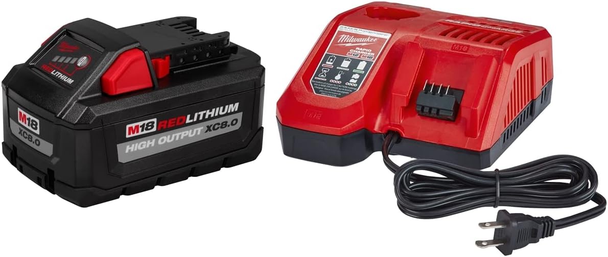Batería de iones de litio Milwaukee 48-59-1880 M18 REDLITHIUM XC de 8 Ah y kit de cargador M18/M12