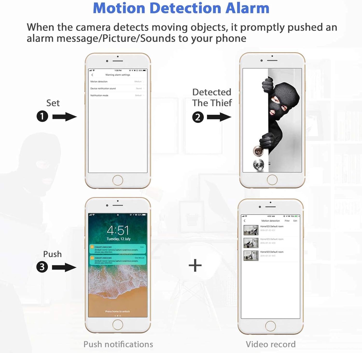 ❤️ Motion Detection Alarm with Picture: When going out, set the camera to warn by message & images to your phone when motion is detected. With the upgraded intelligent motion detection, now you can set the sensor sensitivity manually ( Low/Medium/ High) to help prevent false alarms