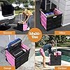 Inspired Living Ultra-Slim Rolling Collapsible Storage Pack-N-Roll Utility-carts, with Telescopic Handle, for Home, Garden, Shopping, Office, School use, Medium, Pink & Black
