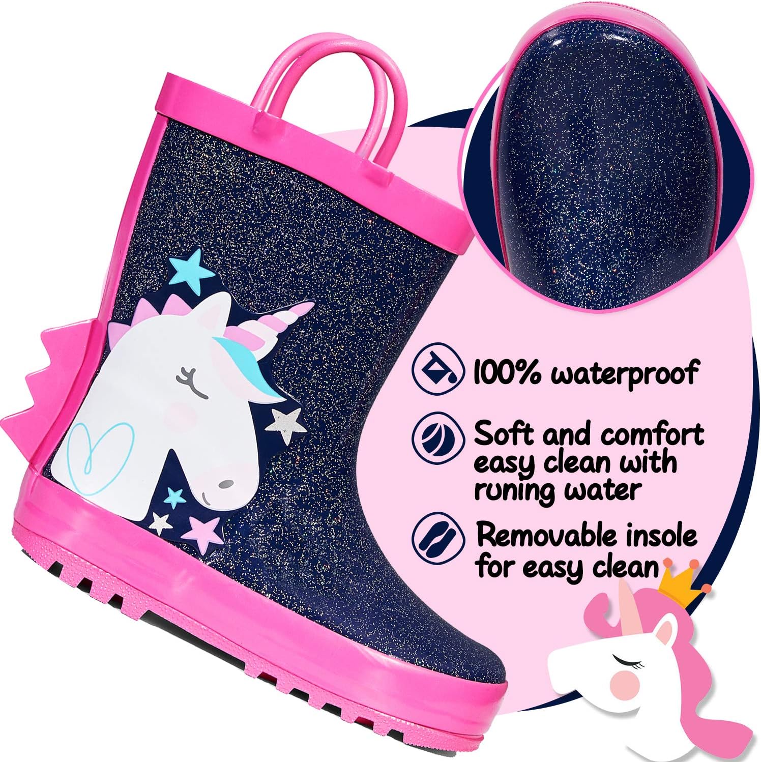 botas de lluvia mysoft para niños y niñas, botas de goma impermeables con asas fáciles de poner