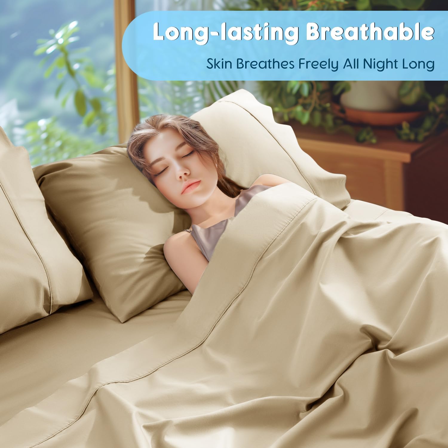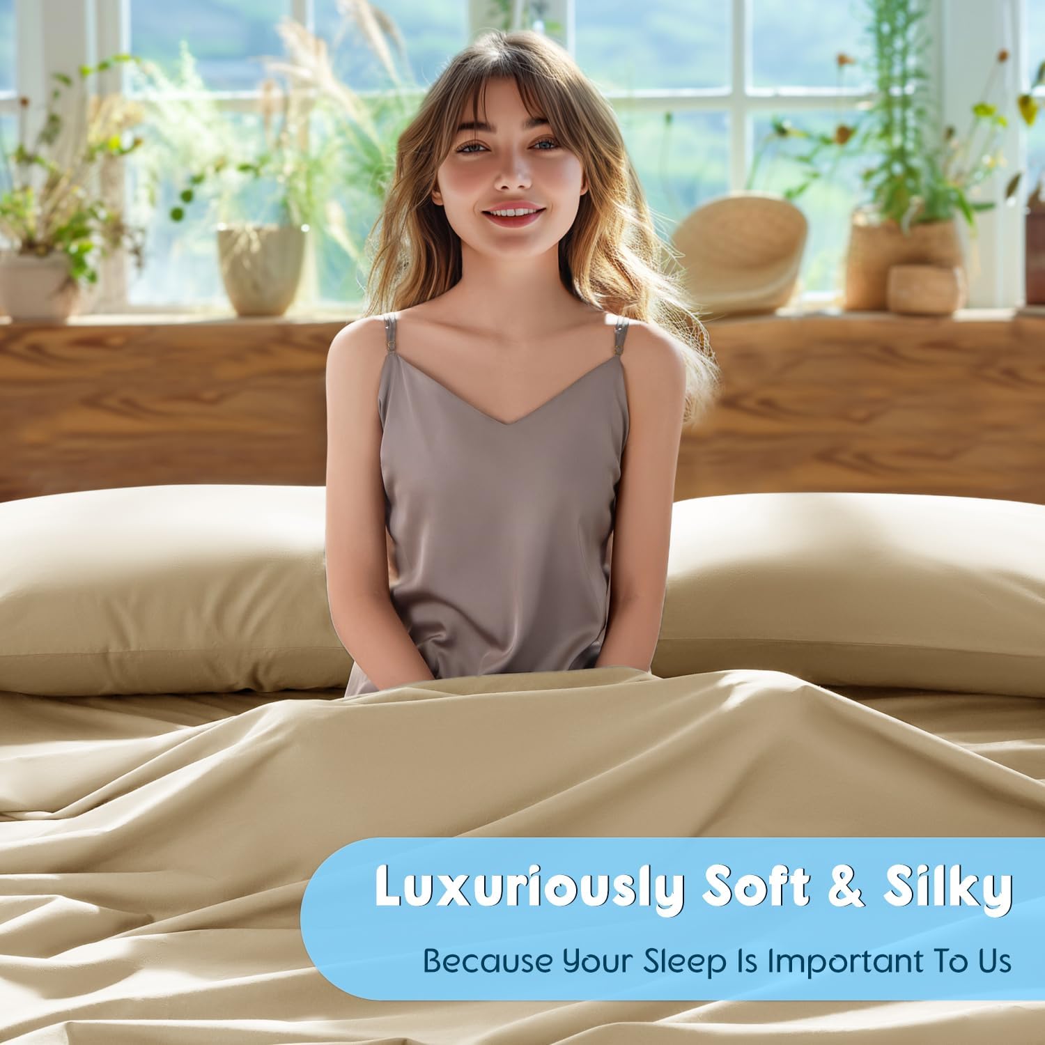 SONORO KATE 100% Egyptian Cotton Sheets Set, Extra Deep Pocket up to 18"-24",1000 High Thread Count, Soft & Breathable 5-Star Hotel Sateen Bed Sheets - 4 PC (Beige,Queen)
