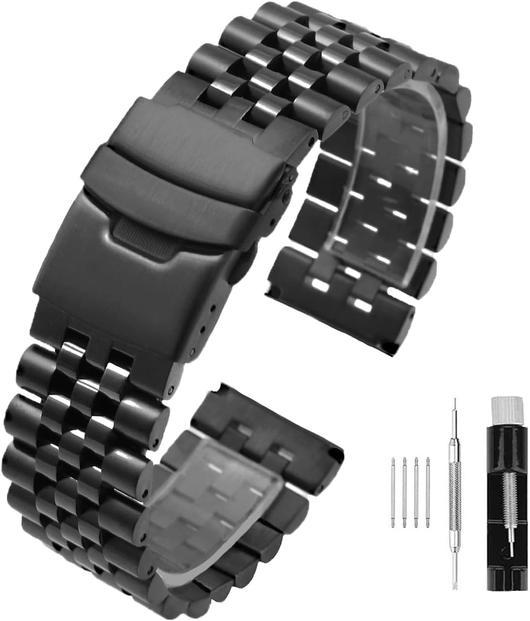 Super Brushed & Polished 3D Solid Silver Stainless Steel Watch Bracelet Band 20mm 22mm 24mm Security Double Deployment Buckle