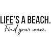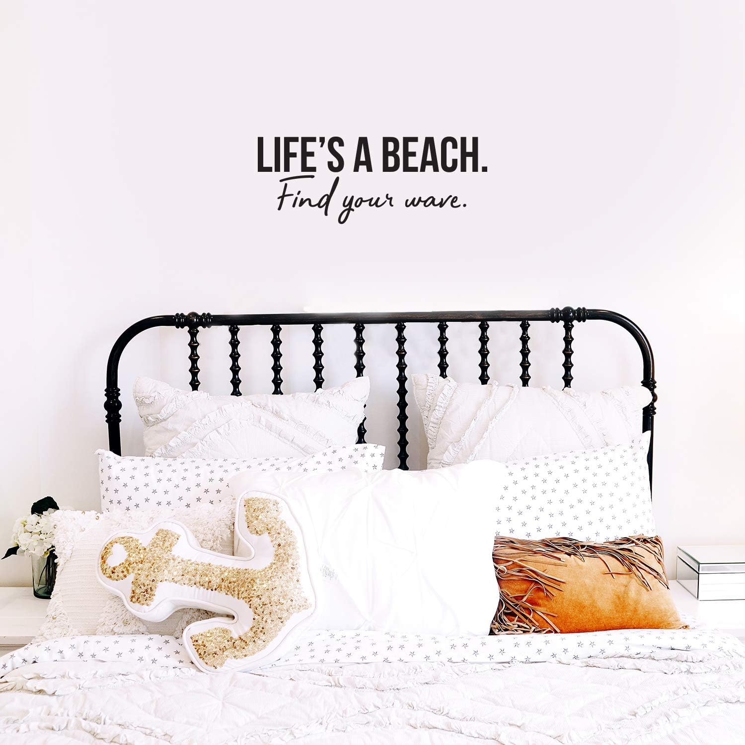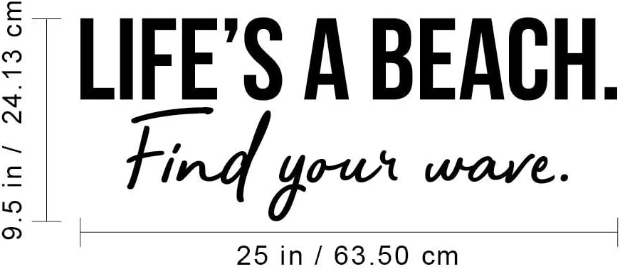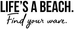 Vinyl Wall Art Decal - Life's A Beach Find Your Wave - 9.5" x 25" - Modern Cool Inspirational Quote for Home Bedroom Apartment Living Room Work Office Decoration Sticker