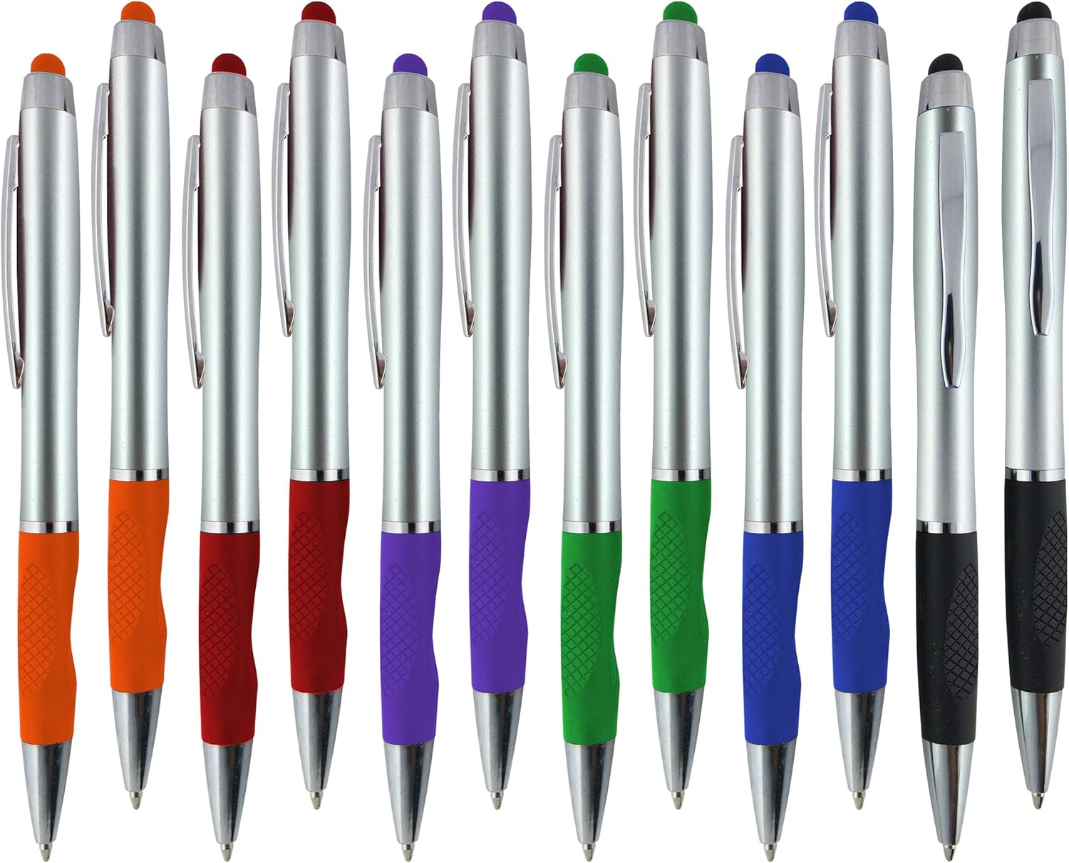SyPen 2-1 Twist Action Stylish Silver Barrel Capacitive Stylus with comfort grip Ball point Blue Ink Pen for Touchscreen Devices, Iphone, Ipad, Android Tablets (12-Pack)