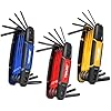 3-pack folding allen wrench set contains 8-piece metric hex key set (Yellow), 9-piece SAE hex key set (Red) and 8-piece torx hex key set (Blue). Key Sizes: 1.5mm, 2mm, 2.5mm, 3mm, 4mm, 5mm, 6mm, 8mm, 5/64", 3/32", 7/64", 1/8", 9/64", 5/32", 3/16", 7/32", 1/4", T9, T10, T15, T20, T25, T27, T30, T40. This allen key set with different sizes is perfect for basic home repair, furniture assembly and various maintenance tasks.