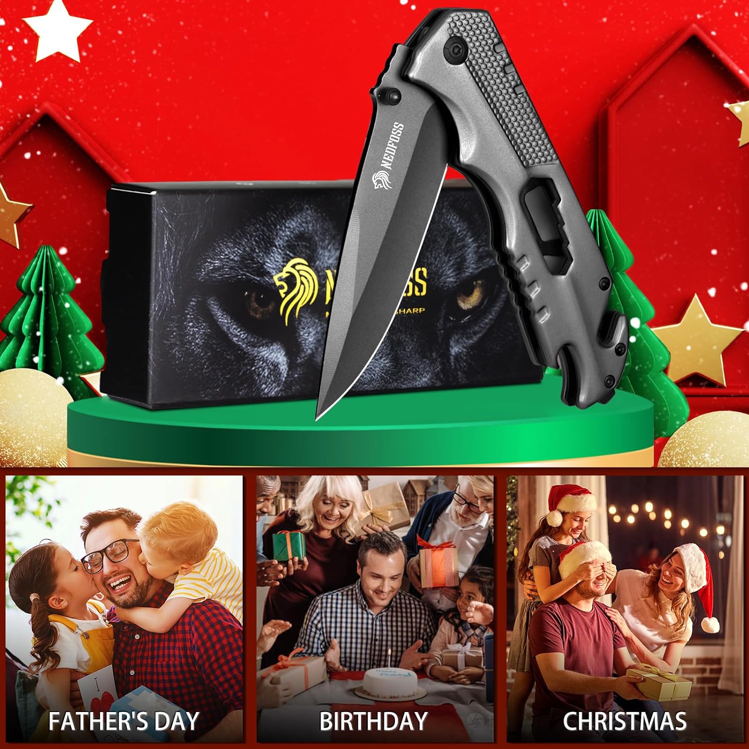 MULTIPURPOSE FOLDING KNIFE: Whether DIY work, rescue knife in the car, outdoor hunting, camping, NedFoss FA48 survival knife is your ideal companion for all activities and situations.