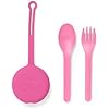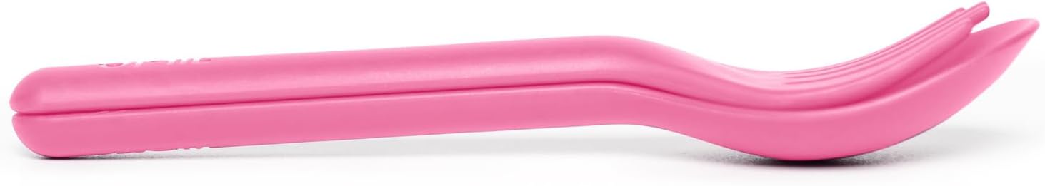 Omie OmieBox Kids Utensils Set con Estuche - 2 Piezas de Plástico, Cubo de Cucharón y Cuchara Reutilizable para Niños (Rosa Burbuja)
