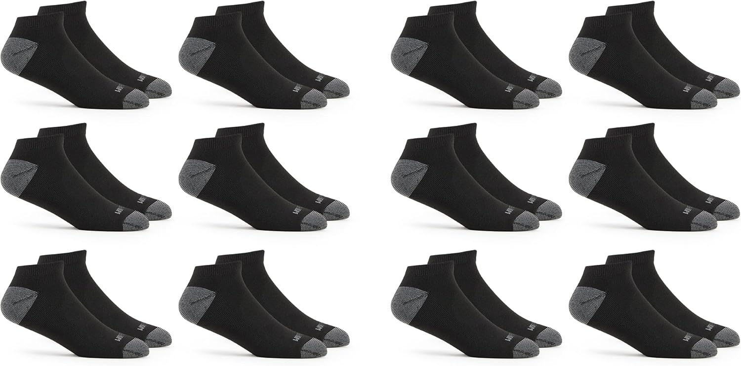 Our men's low cut socks in a 12-Pair value pack feature dual defense technology's long lasting moisture wicking and odor protection. Cushioned for comfort, these everyday socks also have a reinforced heel and toe for added durability.