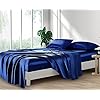 Sabanas de Satén de Seda Lanest, Juego de Sabanas de Satén de Tamaño Queen con Bolsillos Profundos, Sabanas de Satén Fresco y Hipoalergénicas - Azul Marino
