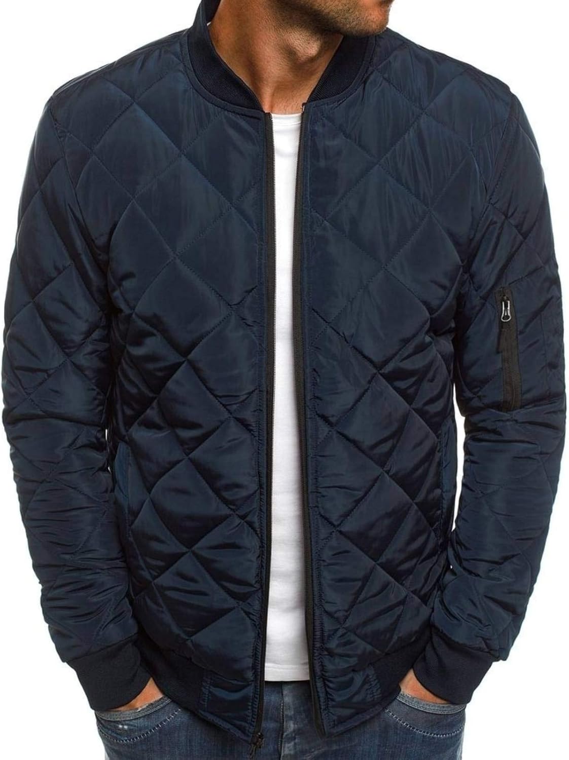 Mens Bomber Jackets Diamond Quilted Fall Winter Rib Varsity Lightweight Coat