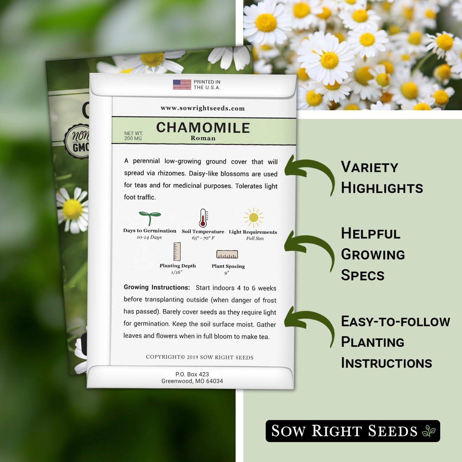 Sow Right Seeds - Roman Chamomile Seeds for Planting - Non-GMO Heirloom Packet with Instructions to Grow an Herbal Tea Garden - Indoors or Outdoor - Low Growing with Small Daisy-Like Blooms (1)