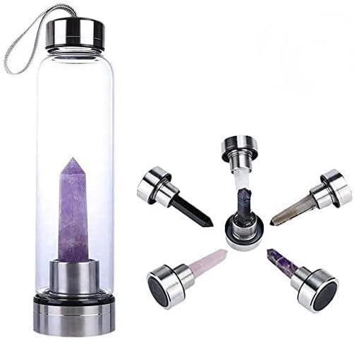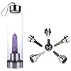 Natural Crystal Glass Water Bottle, Water Bottle with Gemstone Center Crystal Elixir Bottle with Natural Crystal Point Healing Obelisk Handheld Glass Energy Bottle (Amethyst)