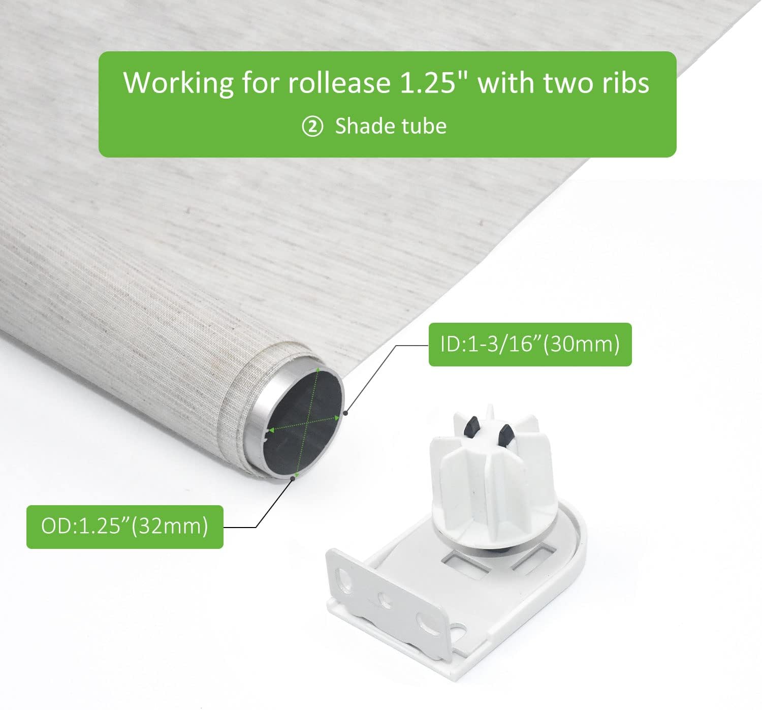Rollerhouses Roller Shade Brackets with Mechanism Roller Shade Clutch+Skyline Mounting Brackets + End Plug for 1 1/4" Tube, White