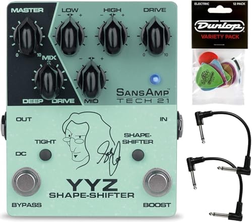 Tech 21 YYZ Geddy Lee Shape-Shifter Signature SansAmp Pedal Bundle with 2 Patch Cables and Dunlop Pick Pack