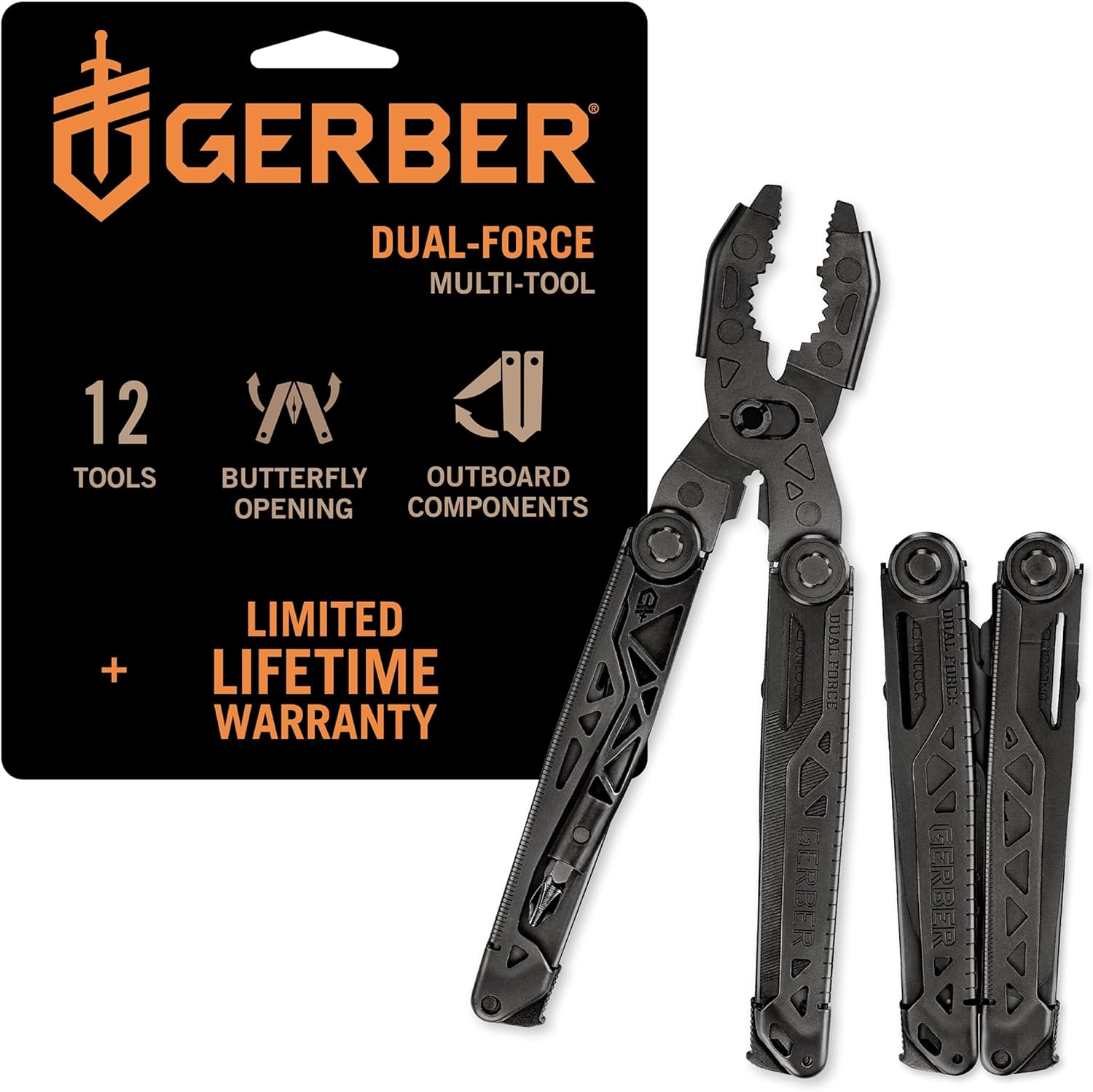 Introducing the Gerber Gear Dual-Force, the ultimate multitool that redefines what you can expect from a set of heavy-duty pliers. Crafted with layered construction, these pliers amplify your grip strength, making it easier to tackle the toughest of jobs. The innovative design of the Dual-Force ensures you have access to a wire cutter and a wire stripper as well.The adjustable slip-joint jaw, paired with extra-large teeth, makes these pliers adaptable to a wide range of tasks. The inclusion of a plain edge blade, saw, and additional bit storage ensures that you have all the necessary tools at your fingertips, whether you're in the great outdoors or working on a home project.The Gerber Gear Dual-Force isn't just about strength; it's also about convenience. These foldable pliers have been engineered for portability. The included fabric sheath makes carrying and accessing your Gerber Gear tool effortless. When you need reliable, heavy-duty pliers that won't let you down, reach for the Gerber Gear Dual-Force multitool pliers.Gerber came to life in 1939 when Portland's own Joe Gerber made the risky move to turn his ad agency into a kitchen knife company. Joe brought his sons Pete and Ham on board, who would help grow the brand from a small kitchen knife company to an internationally known outdoor icon.Over the past 85 years, Gerber Gear has made knives and tools that have become legends in their own right, providing knives and multi-tools for soldiers on the front lines and making essential gear for hunters, anglers, adventurers, and trade workers.To this day, we continue to engineer and manufacture innovative, functional, and dependable tools in Portland, Oregon. Our heritage runs deep, and the legend of Joe Gerber's wild idea still inspires everything we do as we look toward the next generation of innovations.