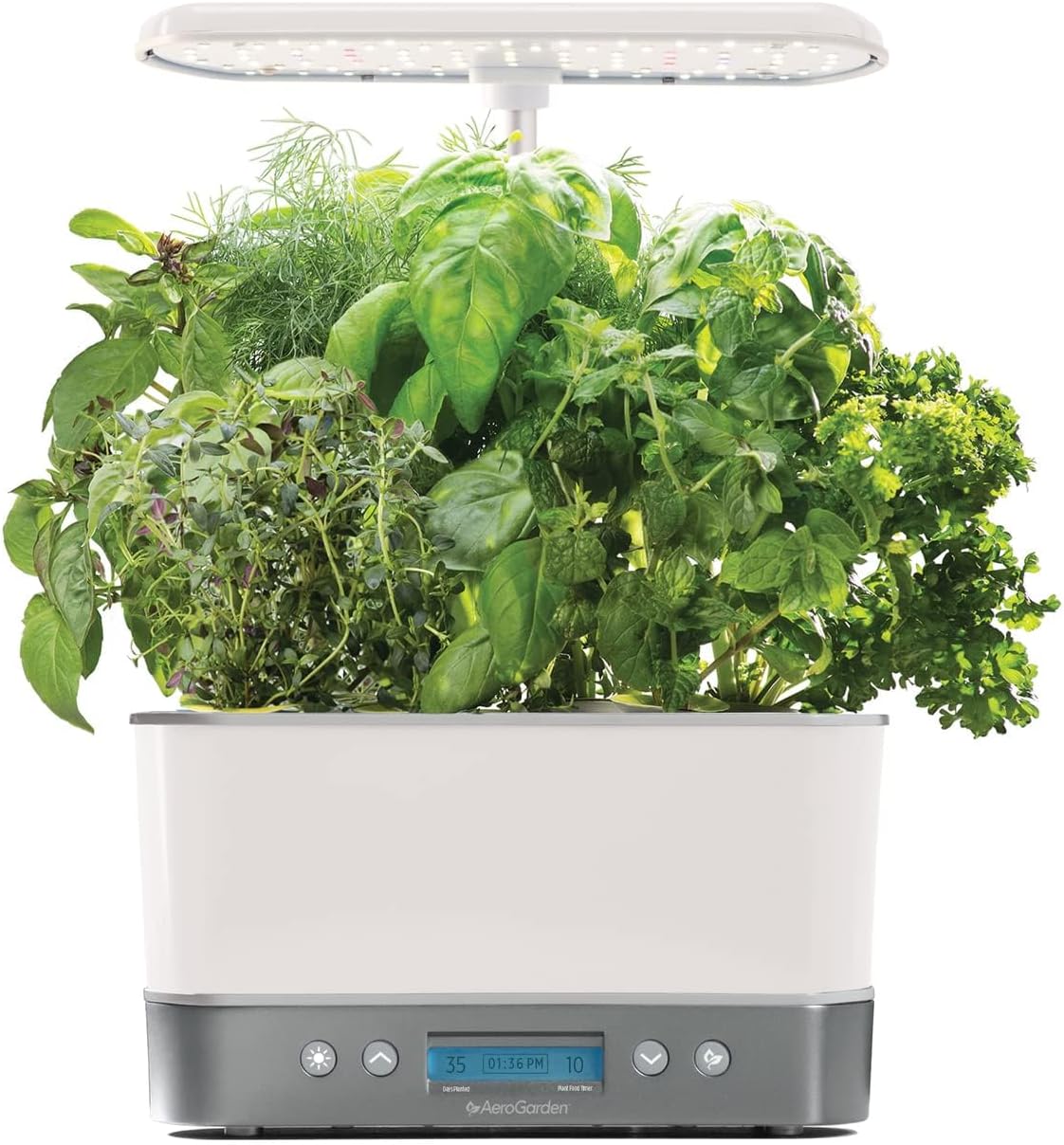 AeroGarden Harvest Elite Indoor Garden Hydroponic System with LED Grow Light and Seed Kit, Holds up to 6 Pods, White Stainless