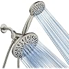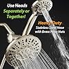 Each Shower Has 6-Settings: power Rain, Pulsating Massage, Power Mist, Rain Massage, Rain Mist, Water Saving Pause mode. Patented 3-Way Water Diverter: simply turn switch to direct water flow between two showers. Features Anti-Swivel Position Lock Nut for easy & secure connection. Angle-Adjustable Overhead Bracket: lets you point each shower where you want it for hands-free operation at desired angle. Reinforced 5 Ft. Stainless Steel Hose: durable Heavy-duty Design with Brass Connection Nuts.
