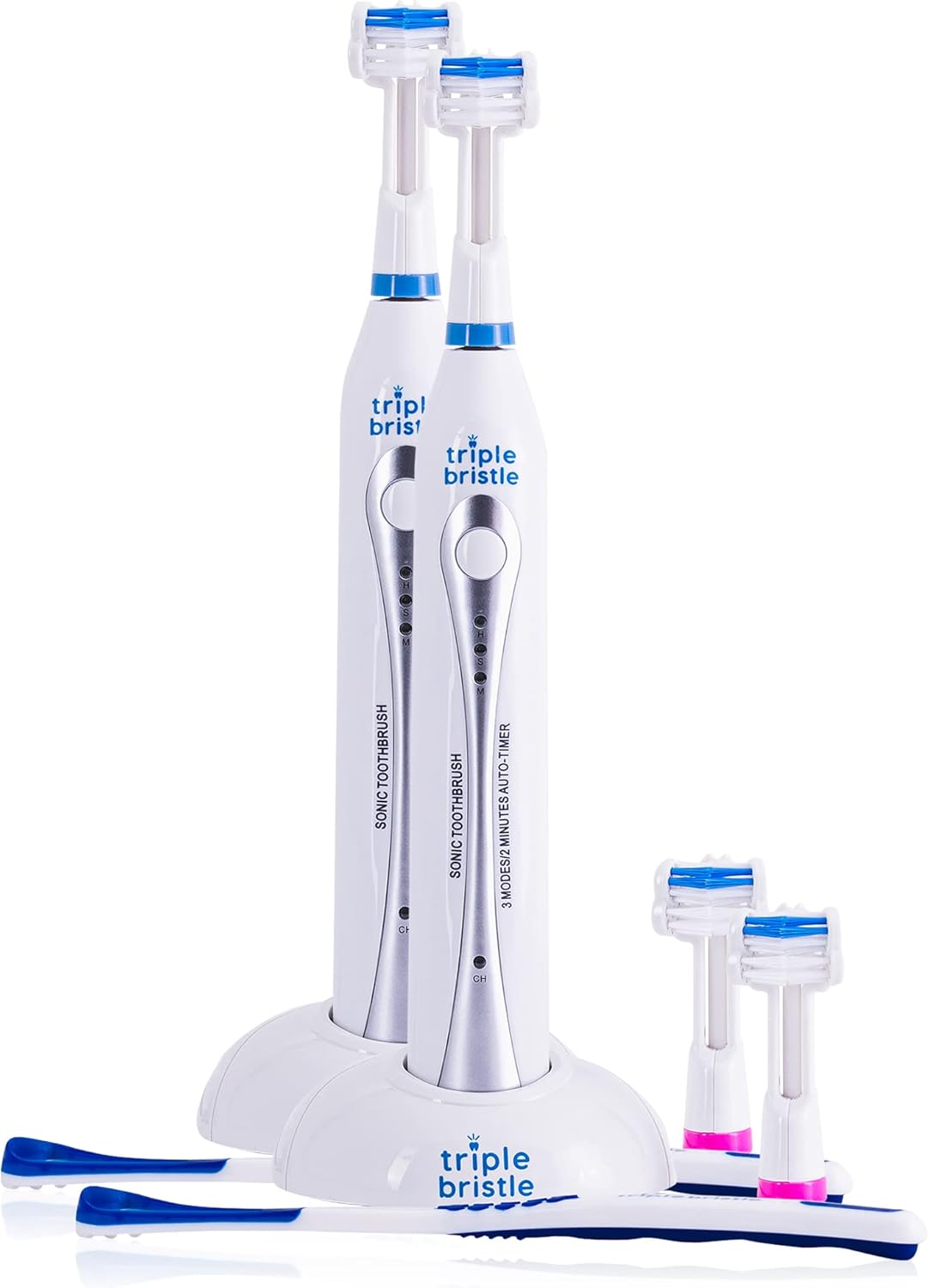 Triple Bristle Original Sonic Toothbrush | Rechargeable 31,000 VPM Tooth Brush | Patented 3 Head Design | Angled Bristles Clean Each Tooth | Dentist Created & Approved | Triple Bristle Original 2 Pack