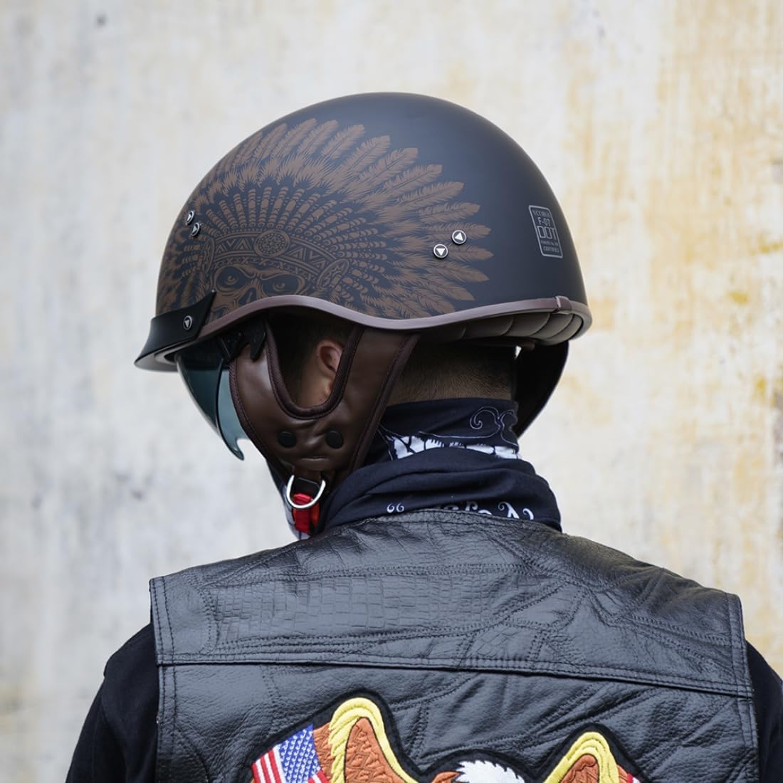 Casco Semiabierta para Motocicleta con Visera Solar y Hebilla de Liberación Rápida Aprobado DOT para Hombres y Mujeres (F02-Indian, M)