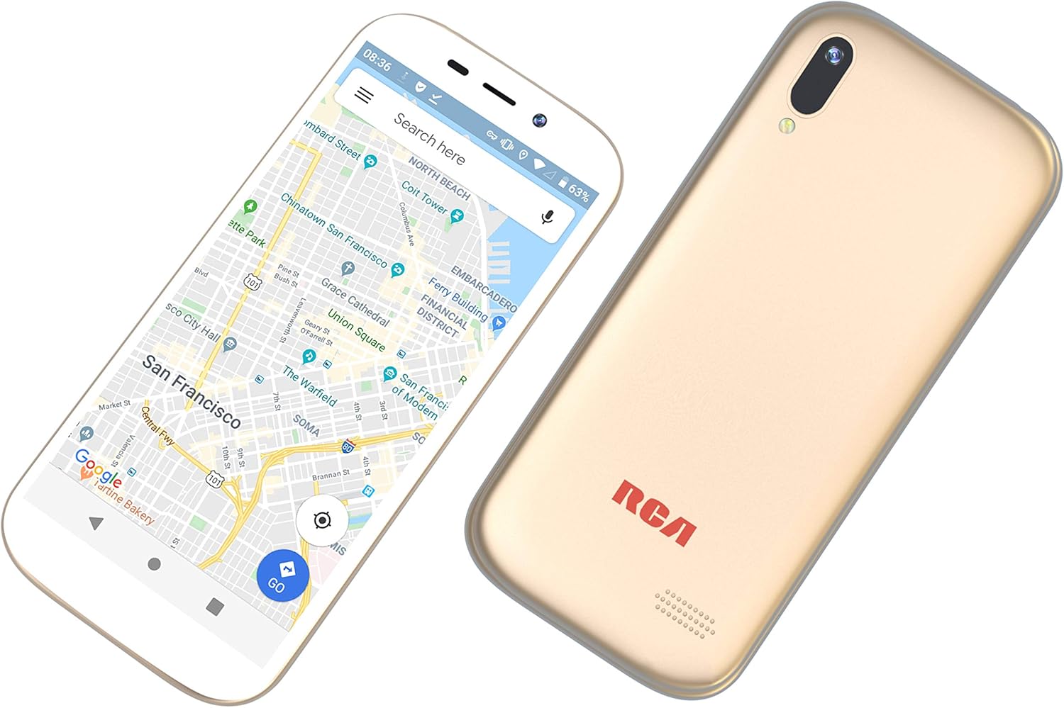 RCA G2 32 GB+3 GB de RAM, pantalla de 5.5 pulgadas 18:9, Android 9 Pie, teléfono desbloqueado (blanco/dorado)