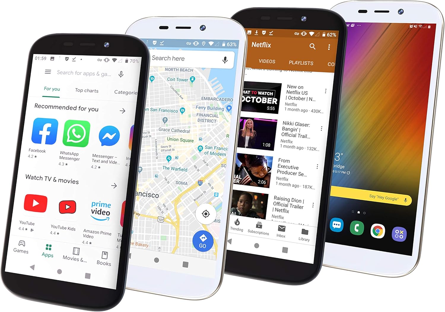* El más nuevo Android 9.0 Pie con 32 GB de memoria interna y 3 GB de RAM. Ranura para una tarjeta microSD opcional con una capacidad de hasta 128 GB.