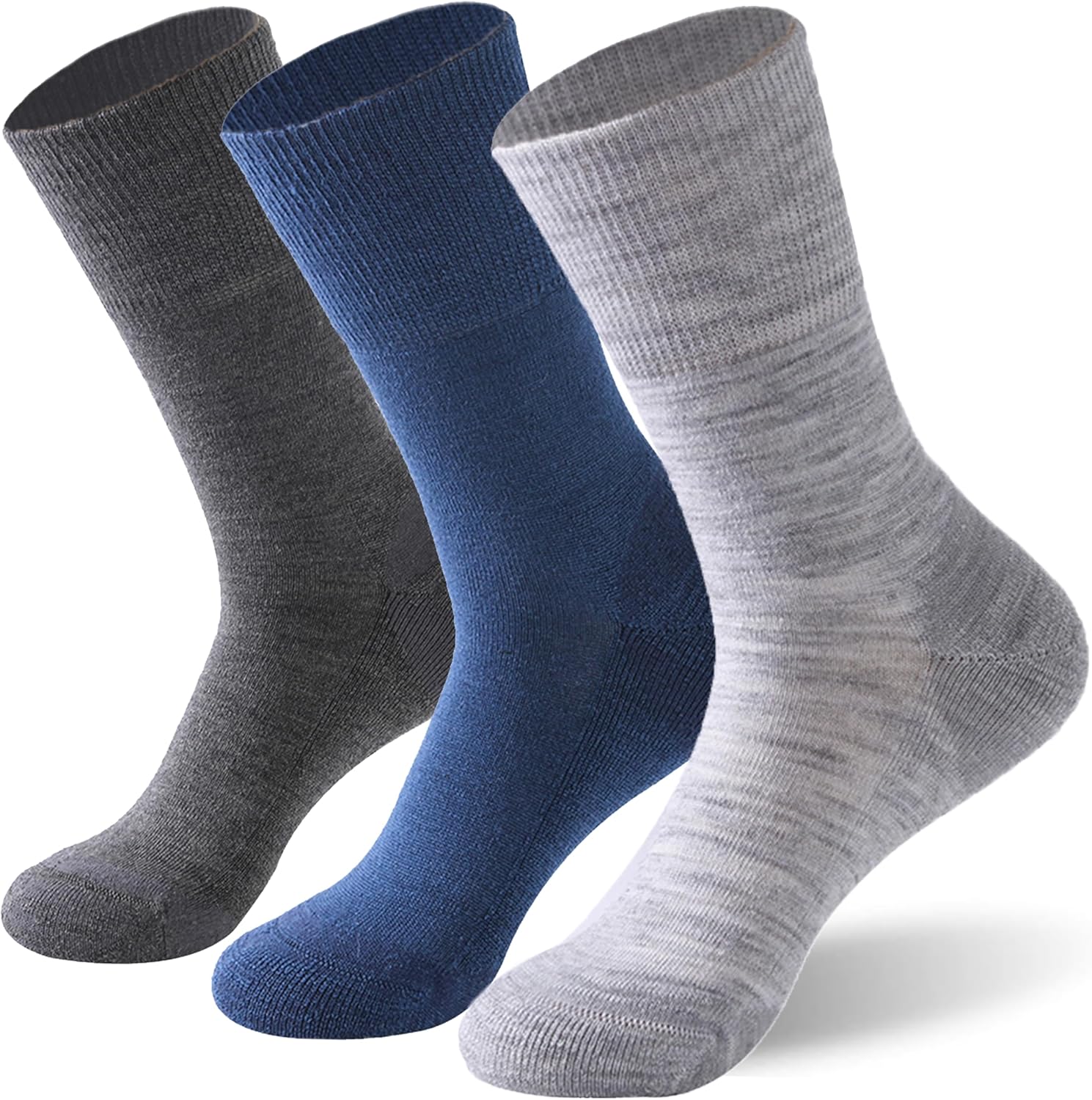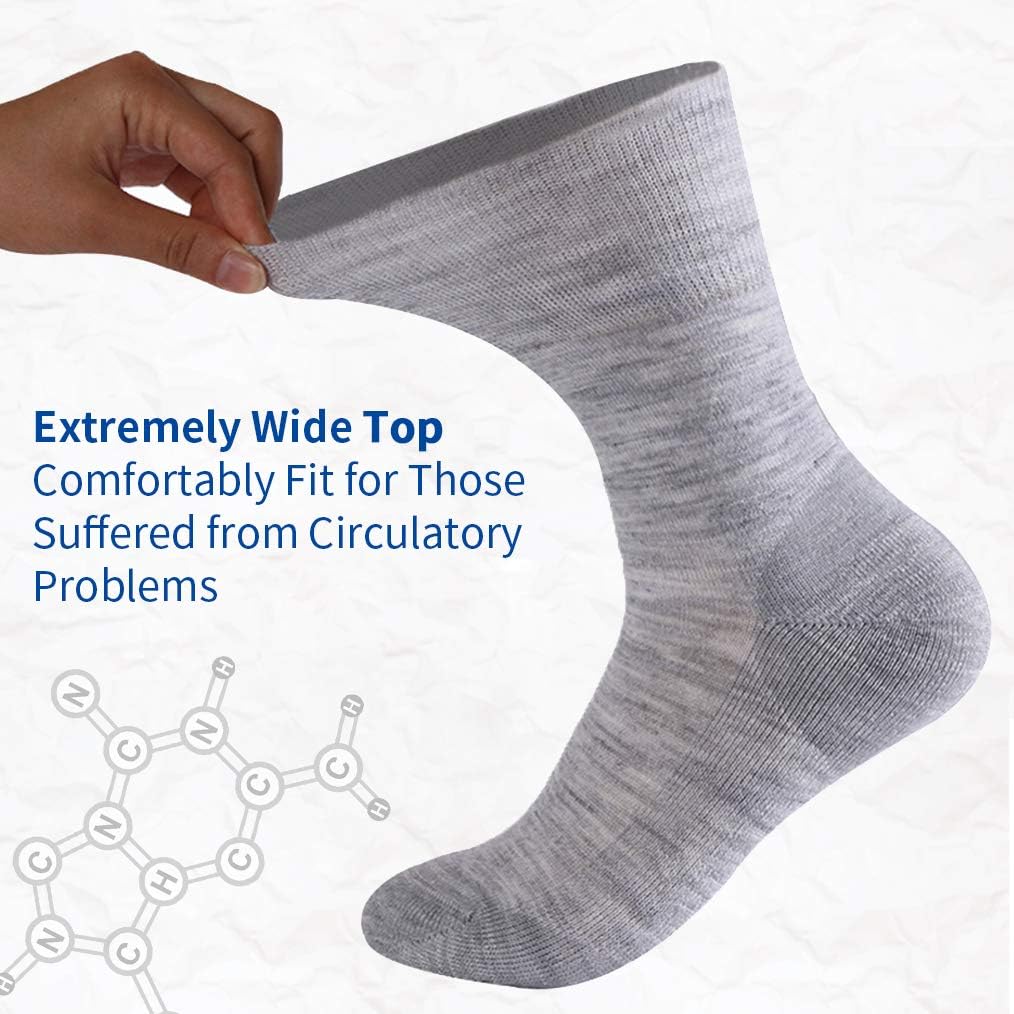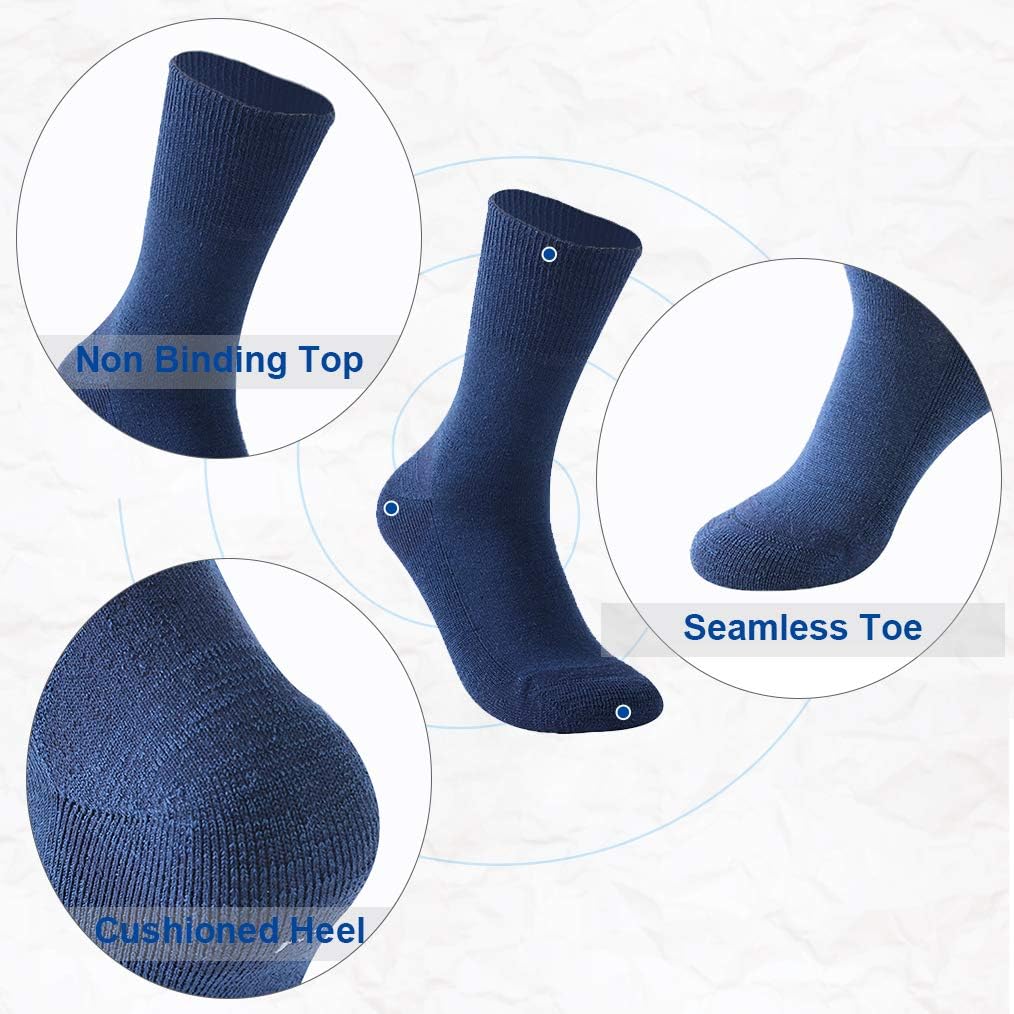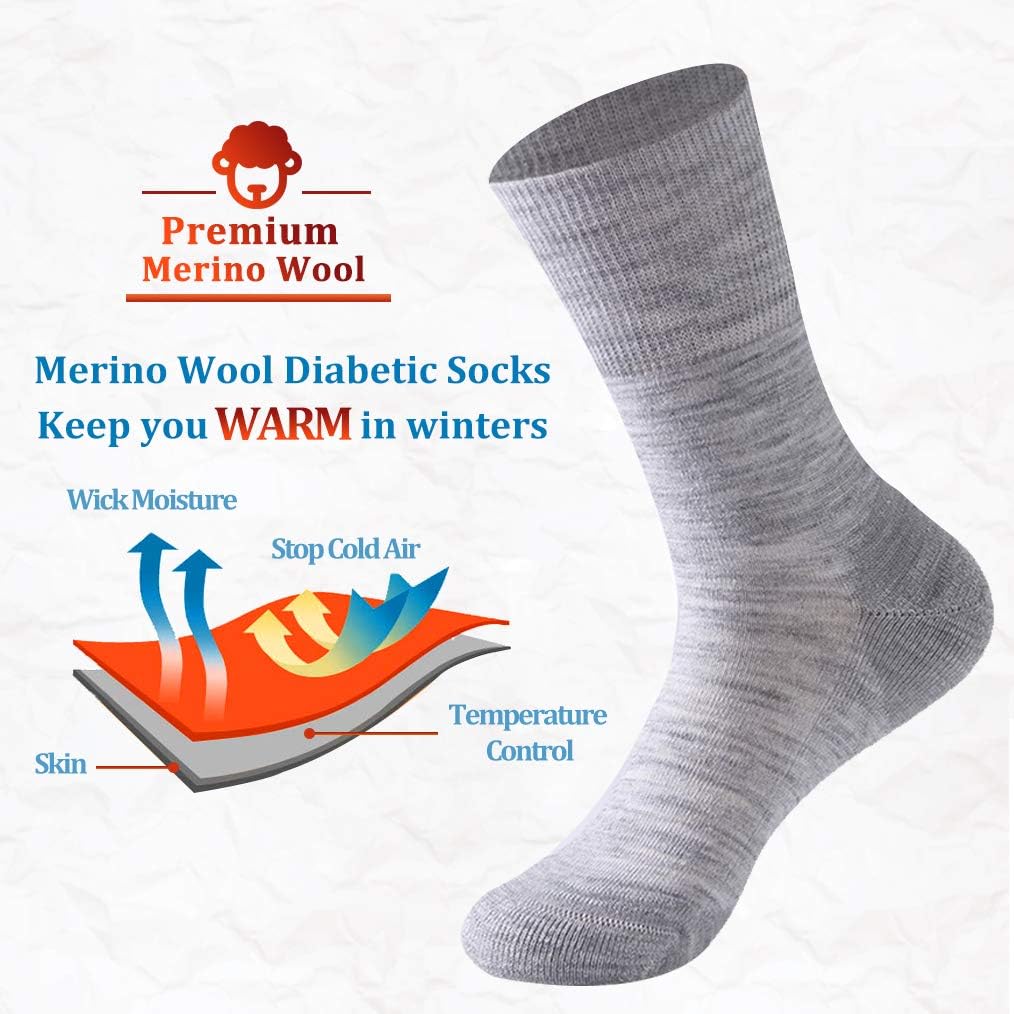 Forcool Merino Wool Non Binding Loose Top Cushioned Sole Dress Crew Diabetic Socks for Men and Women, M/L/XL, 3 Pairs