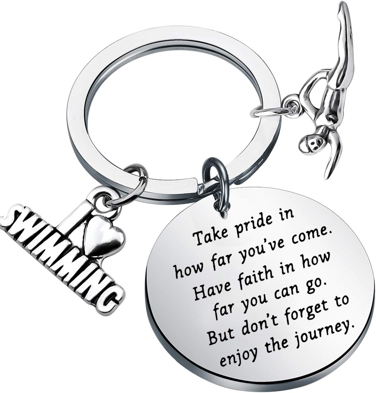 FUSTMW Swim Keychain I Love Swimming Lover Gift Swim Team Inspirational Gift