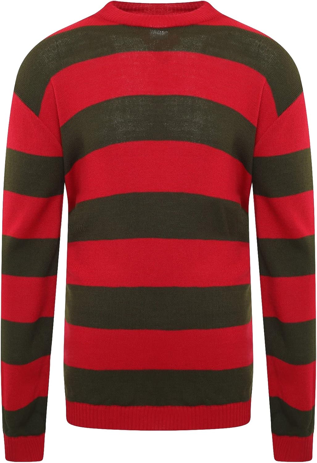 Girlzwalk Kids Unisex Winter Striped Halloween Knitted Jumper 3-13 Years, Brown Hat and Fingerless Deluxe Plastic Glove