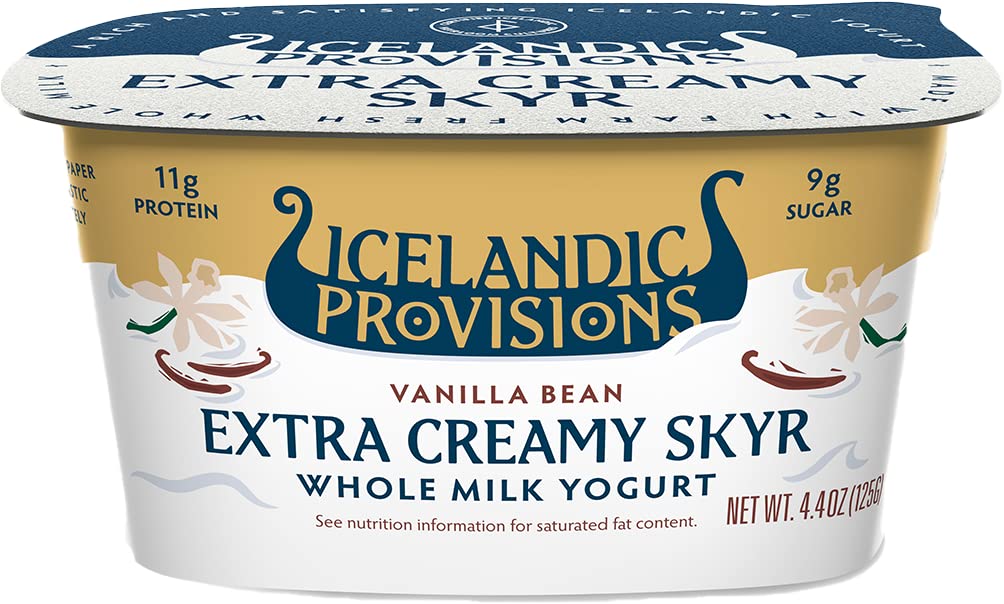 Icelandic Provisions Extra Creamy Skyr Whole Milk Yogurt, Vanilla Bean, Kosher, Gluten Free, 4.4 Ounce (Pack of 12)