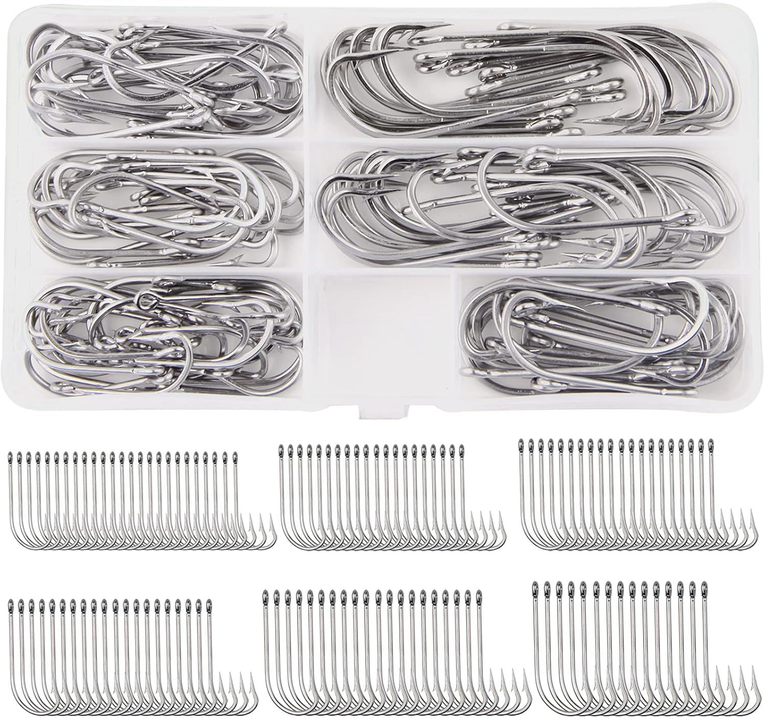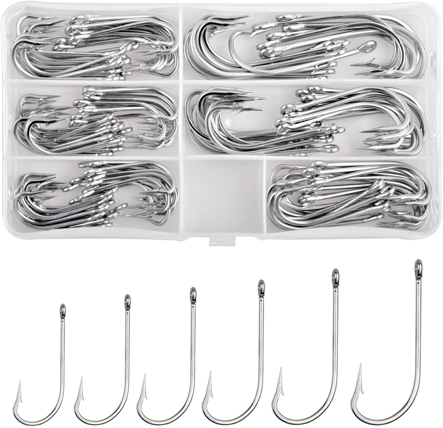 Pacakge Includes: 120pcs Fishing hooks kit, including 6 sizes hooks - 25pcs 1/0, 20pcs 2/0, 20pcs 3/0, 20pcs 4/0, 20pcs 5/0, 15pcs 6/0.
