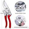 【Easy to Lock and Unlock】More safe with this hedge shears with one button, you can move the button to the right for the unlock of the Pruning Scissors, and move it to the left for the lock of Pruner Shears. Very easy to operate