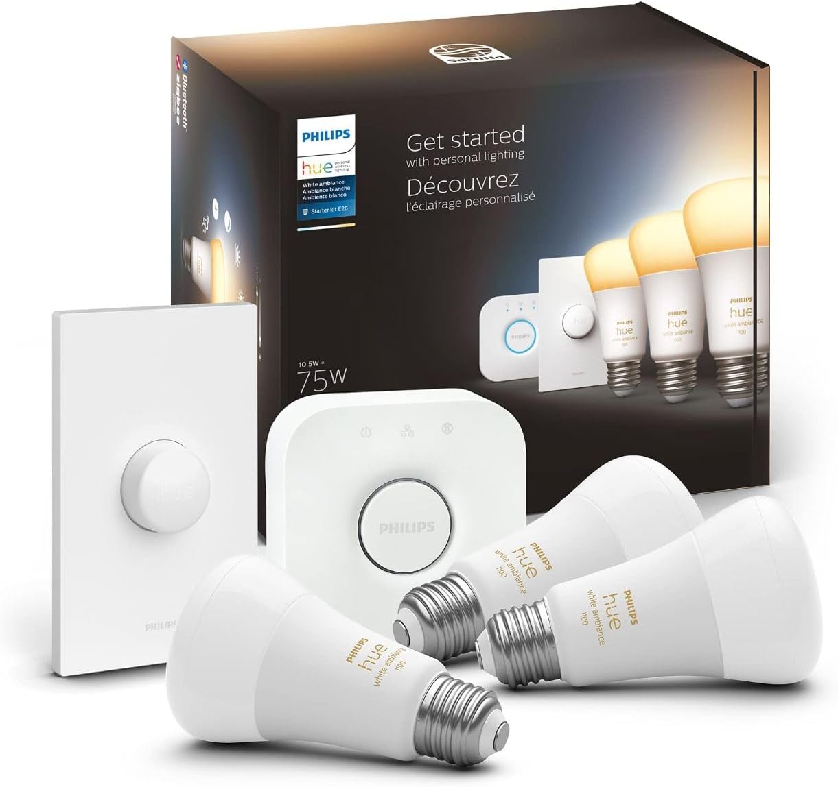 Philips Hue White Ambiance Base Lumen (60W) Smart Button Starter Kit, 16 Millions Colors, Works with Amazon Alexa, Google Assistant, Apple HomeKit 60 Watt (Old Version)