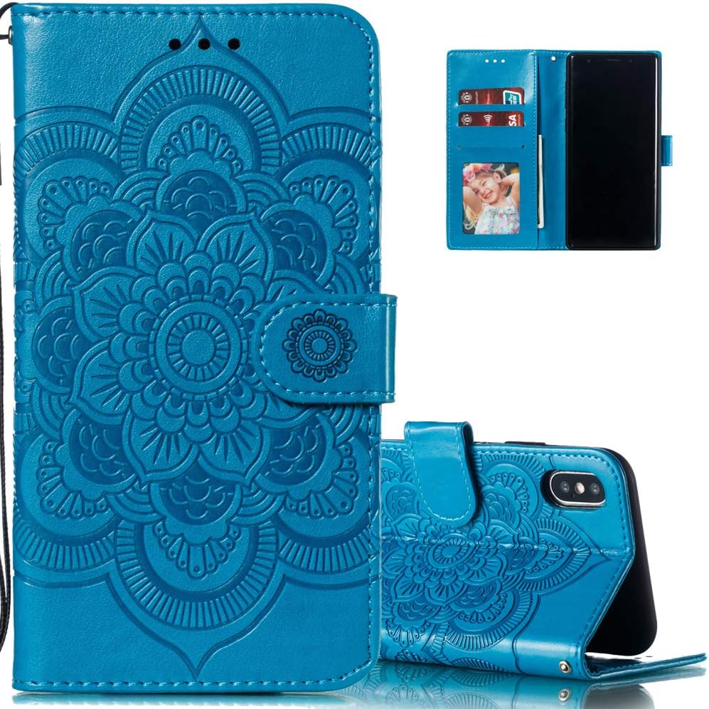 LEECOCO for iPhone X Case Mandala Embossing Luxury PU Leather Flip Notebook Wallet Bookstyle Magnetic Stand Card Slot Folio Bumper Protection Cover for iPhone X/iPhone Xs Mandala Blue LD