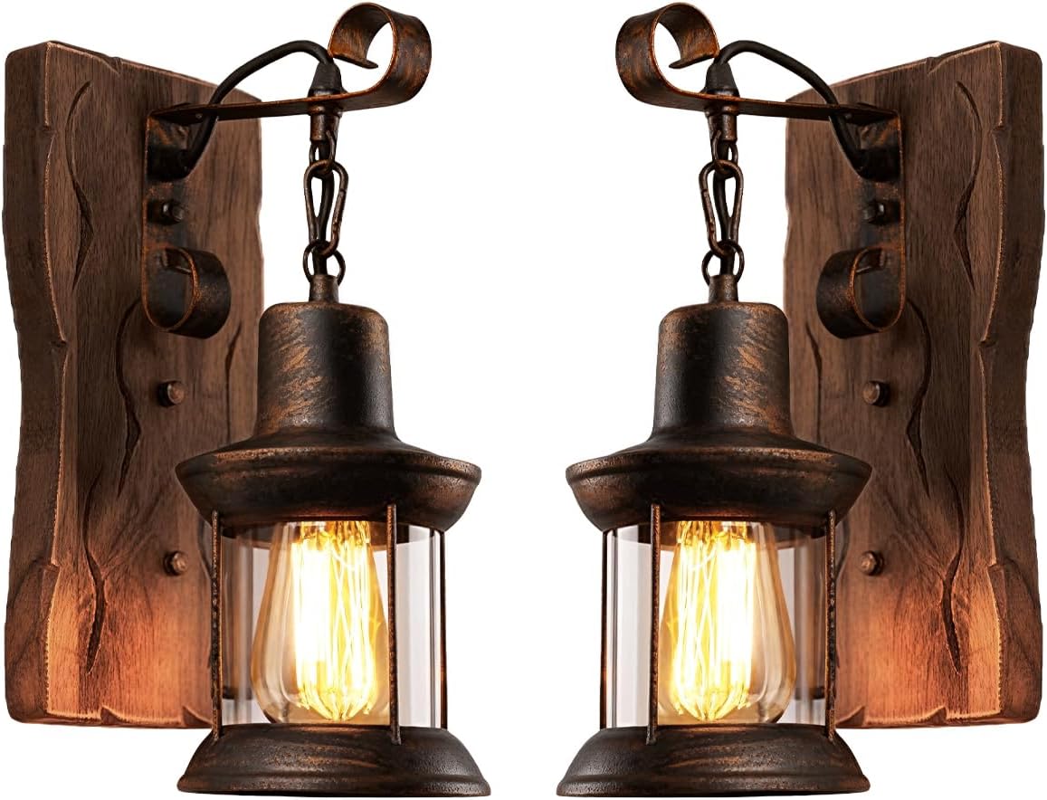 Lámparas de Pared Rurales LightInTheBox, Lámpara de Pared Vintage, Luminarias Rurales, Lámpara de Pared Antigua de Madera para Pasillo, Espejo de Vanidad, Pasillo, Cama del Dormitorio, Bar (Paquete de 2)