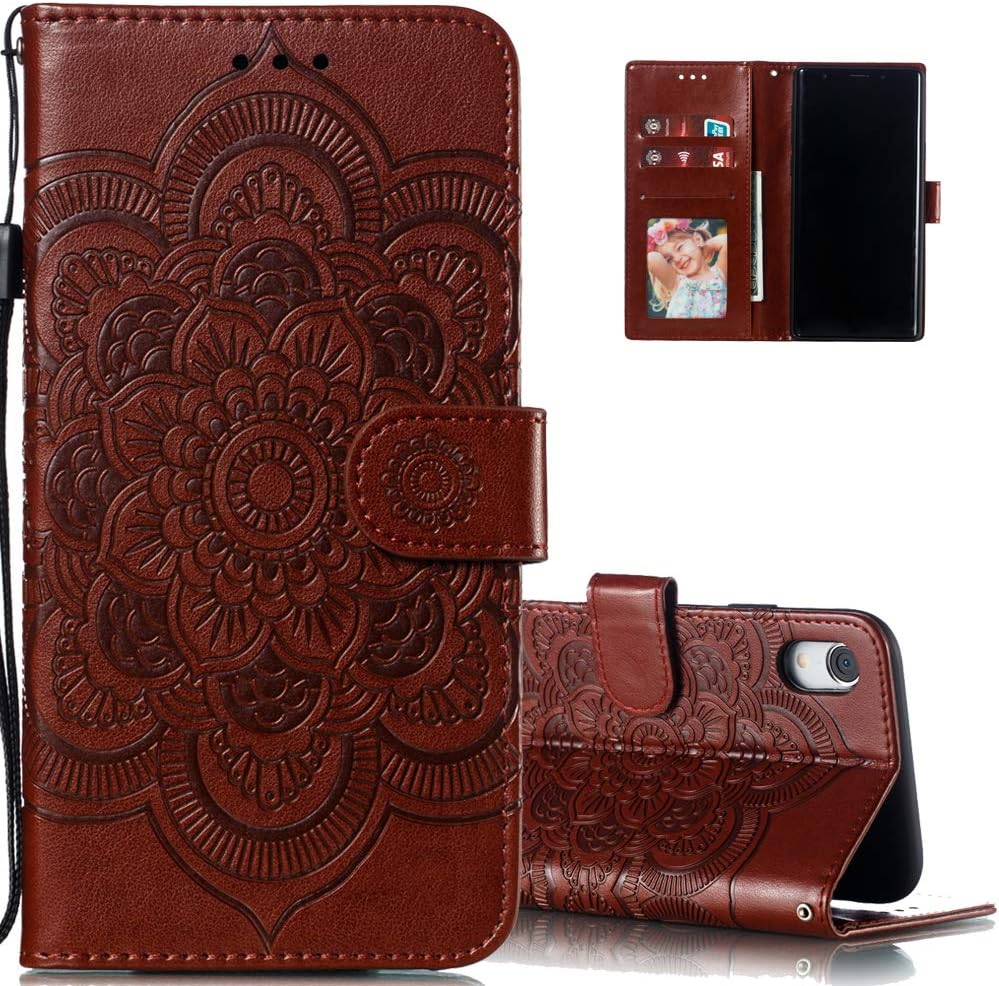 LEECOCO for iPhone XR Case Mandala Embossing Luxury PU Leather Flip Notebook Wallet Bookstyle Magnetic Stand Card Slot Folio Bumper Protection Cover for iPhone XR 6.1 inch Mandala Brown LD
