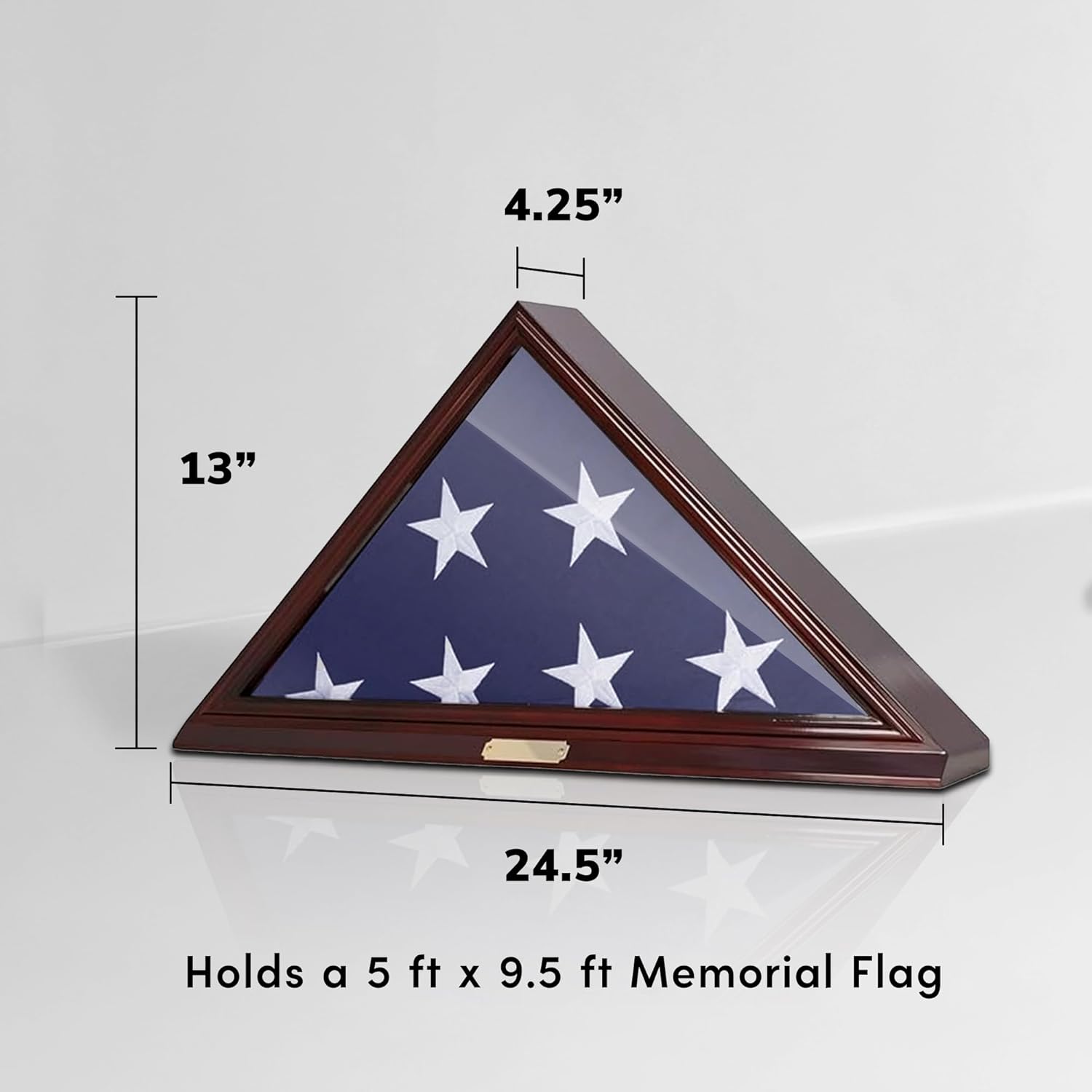 Preserve and display a cherished flag in this gorgeous triangle solid cherry wood flag case. You can put on a table or hang on the wall with two strong wall mountable hardware (included).