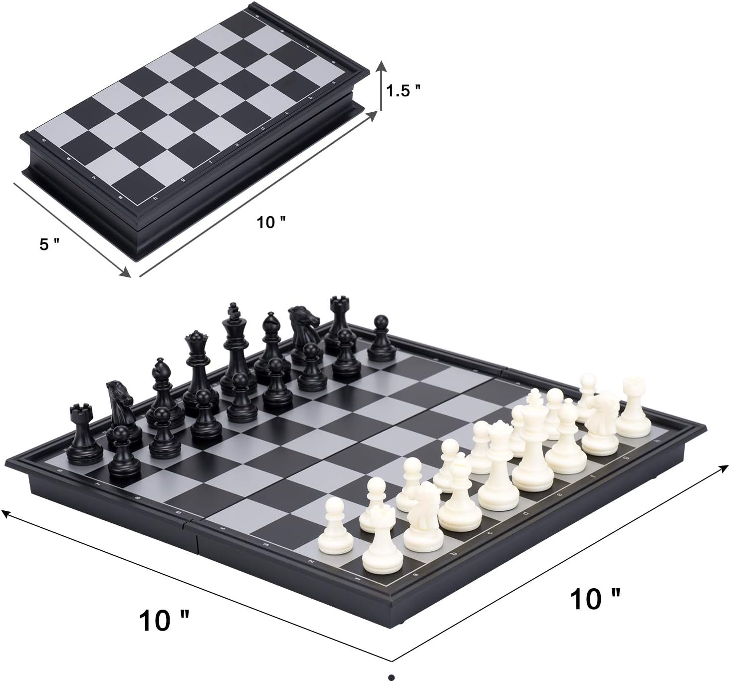 AMEROUS 10 Inches Magnetic Travel Chess Set with Folding Chess Board - 2 Extra Queens - Instructions for Beginner, Kids and Adults